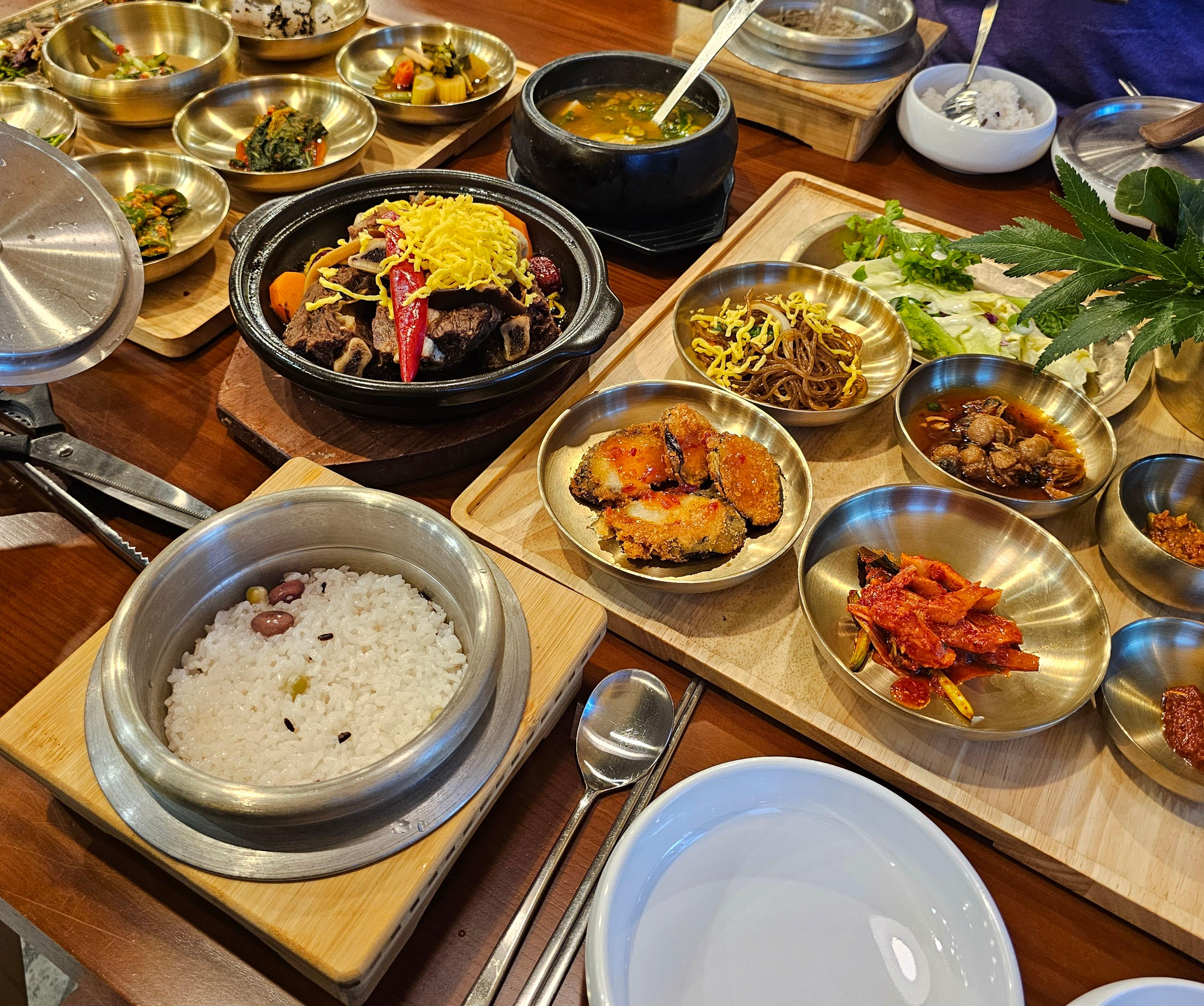 - 소갈비찜 16첩 쌈밥·솥밥 정찬: 약 28,800원 (단품 갈비찜 추가는 34,800원)